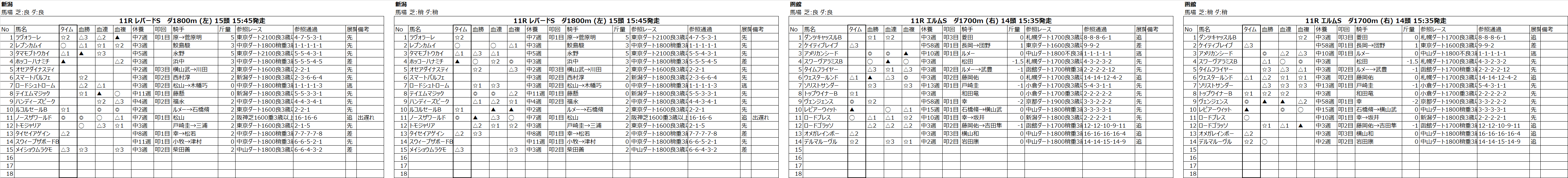 後半のタイム指数は時間が近づいた頃に11R~12Rを載せることがありますが、気分次第なところもあるのでご注意ください。